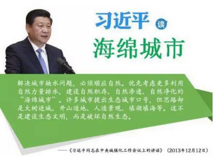 2013年12月,习近平提出:建设自然积存,自然渗透,自然净化的海绵城市。而这三个“自然”实际上是强调利用生态的方式加强城市雨水管理能力。