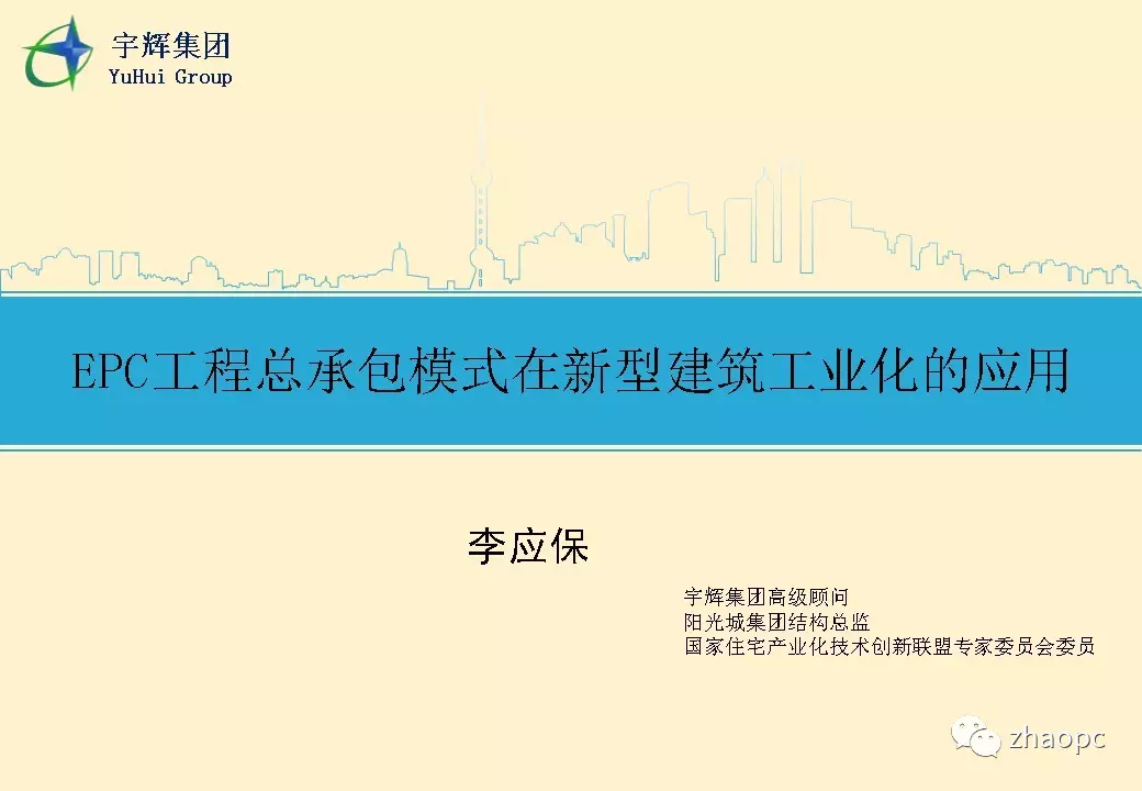 2017年4月6日,在zhaopc2017年建筑工业化城市路演——苏州站上,宇辉集团高级顾问李应保做了题为《EPC工程总承包模式在新型建筑工业化的应用》的主题演讲。